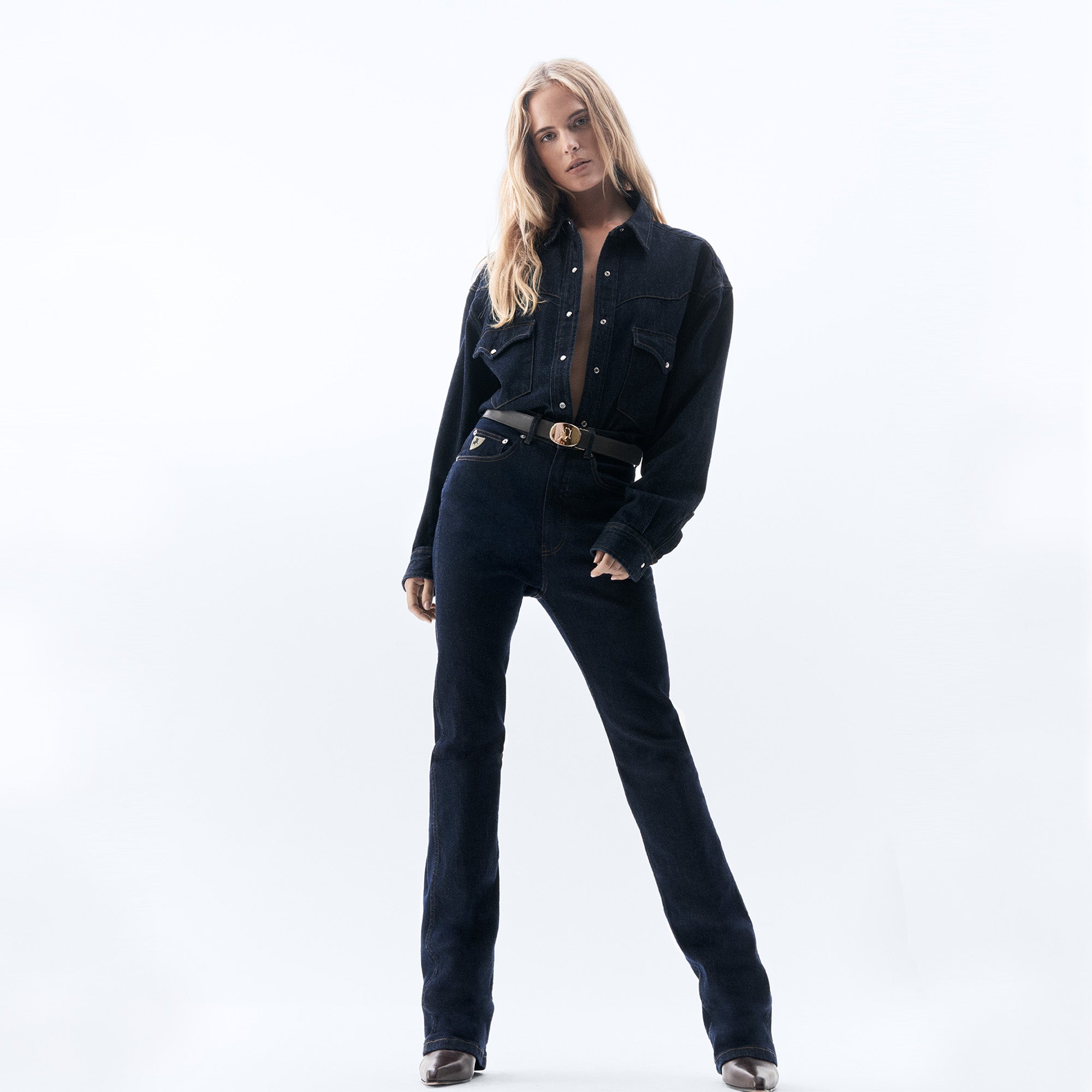 - We recommend washing the jeans before wearing them and to keep them away from light colours, as they may leave traces of blue on you