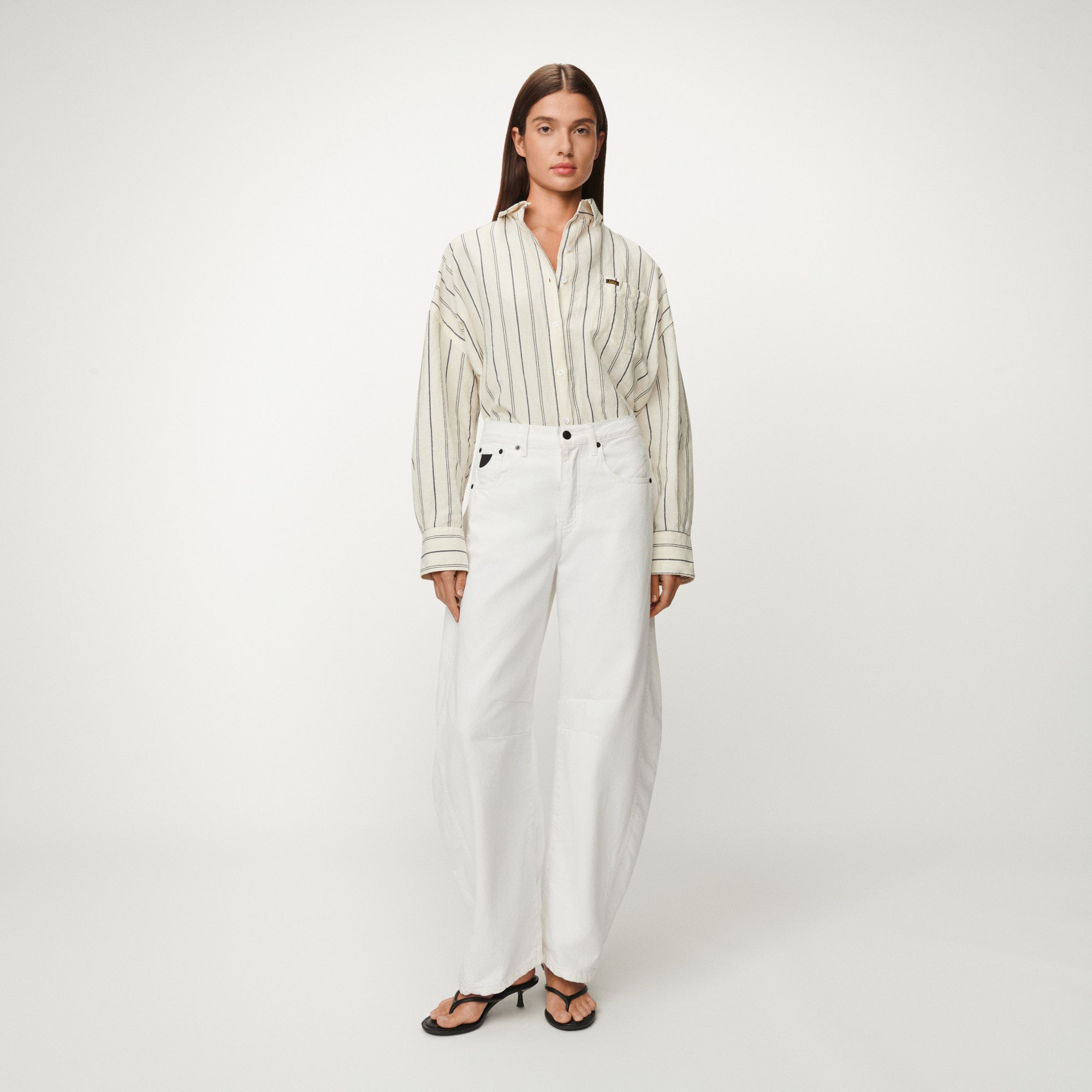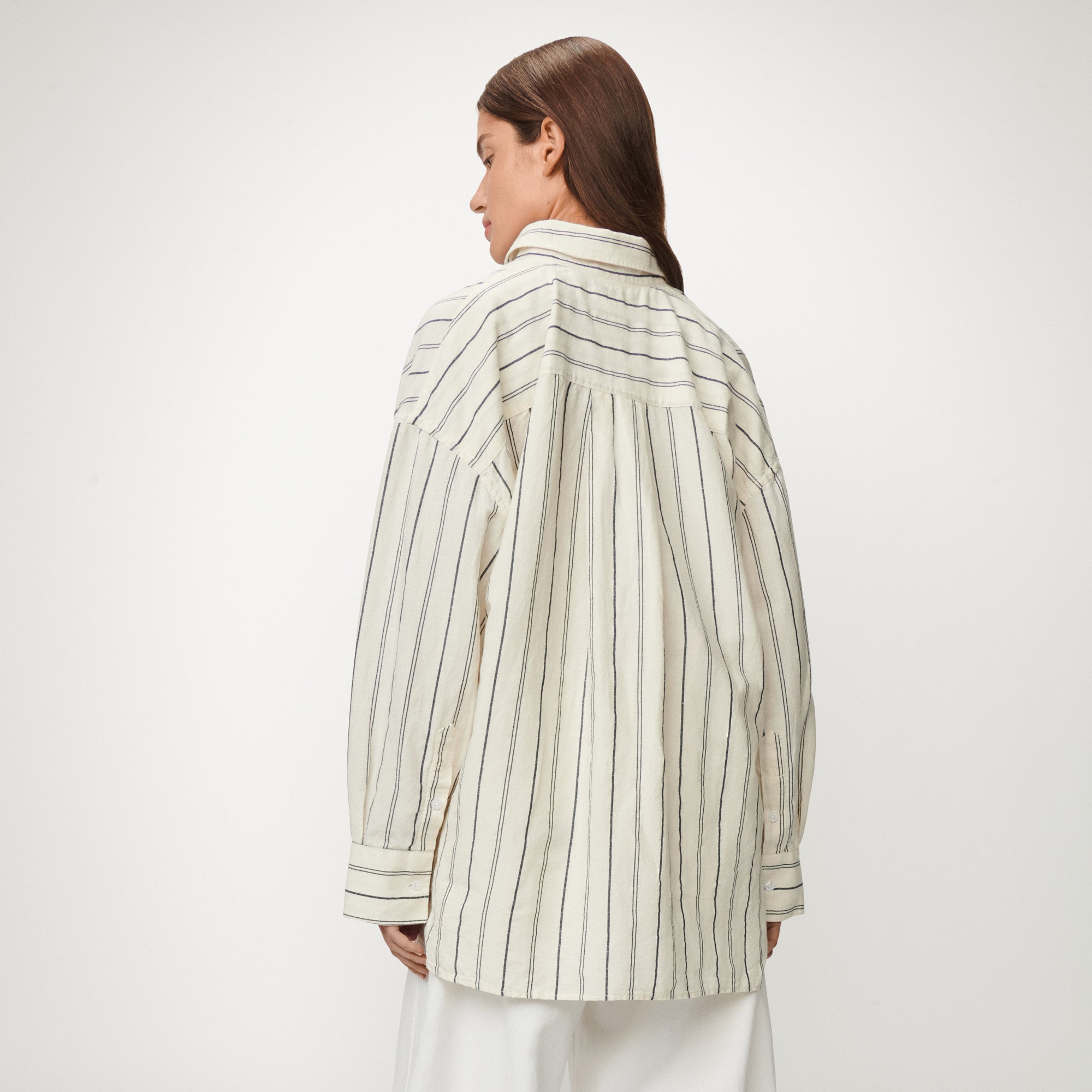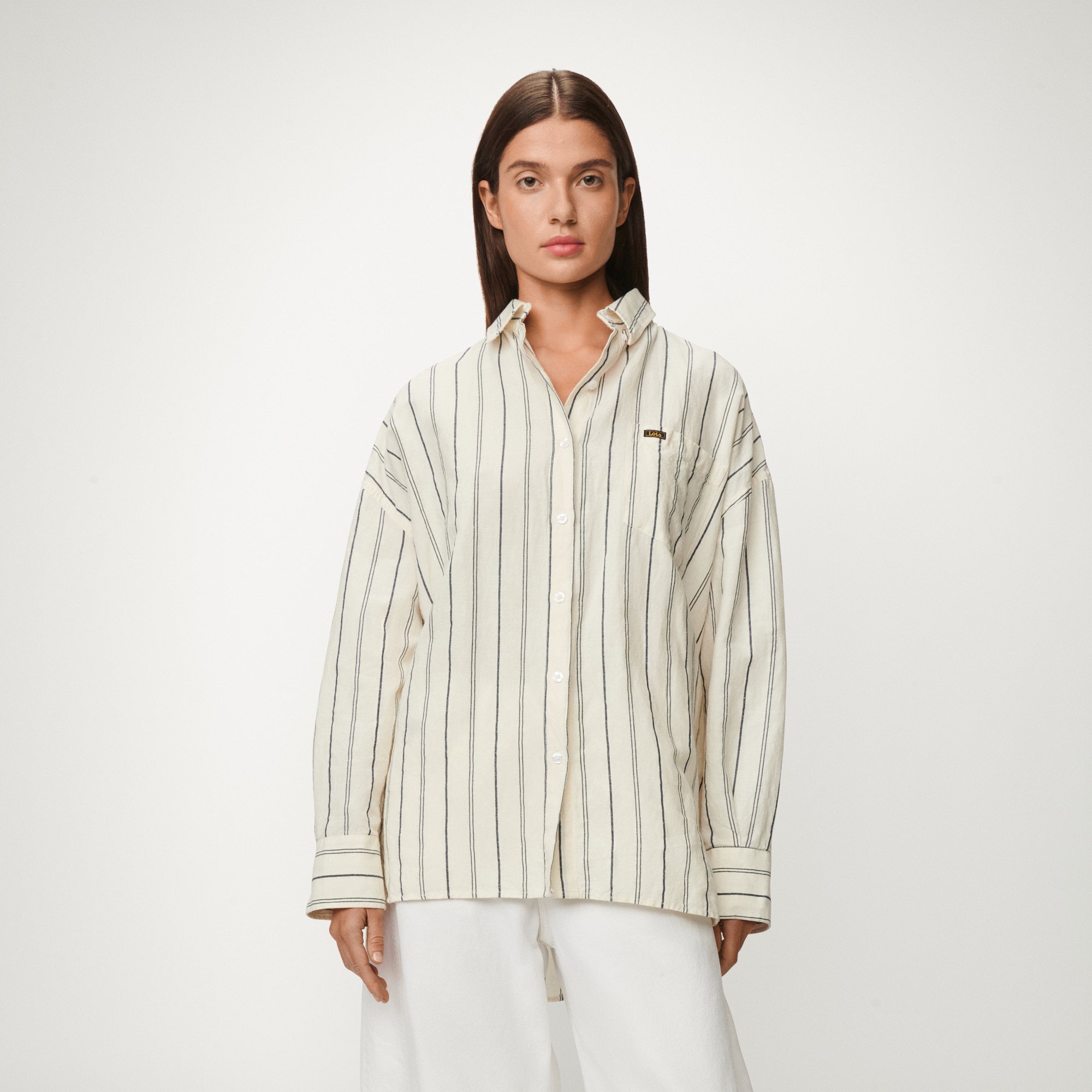 The Chelsea is our oversized striped button-up shirt with chest pocket.