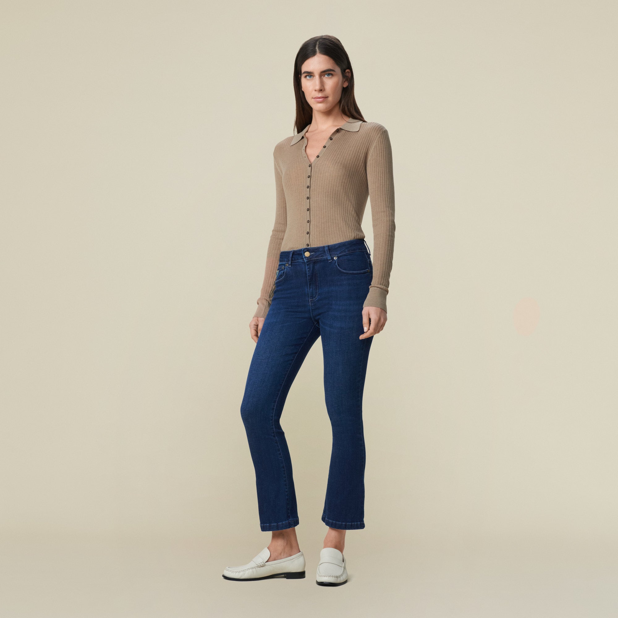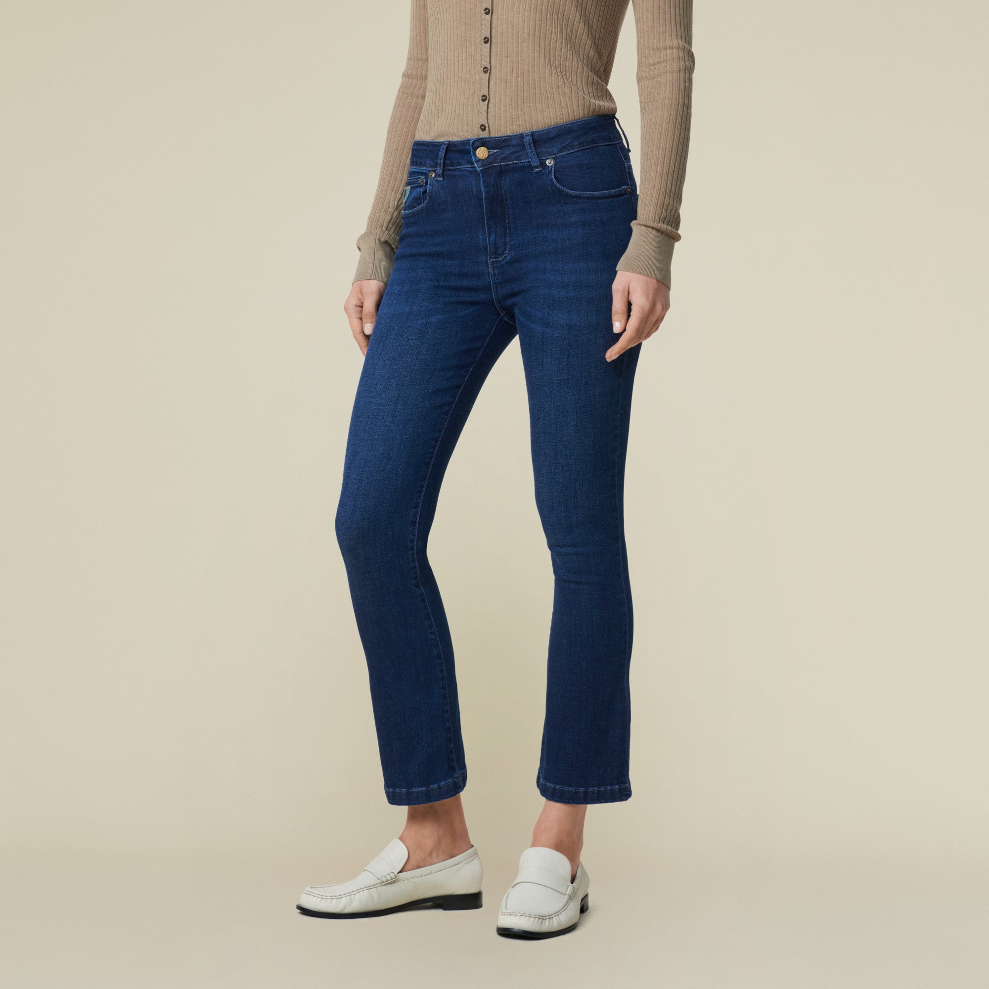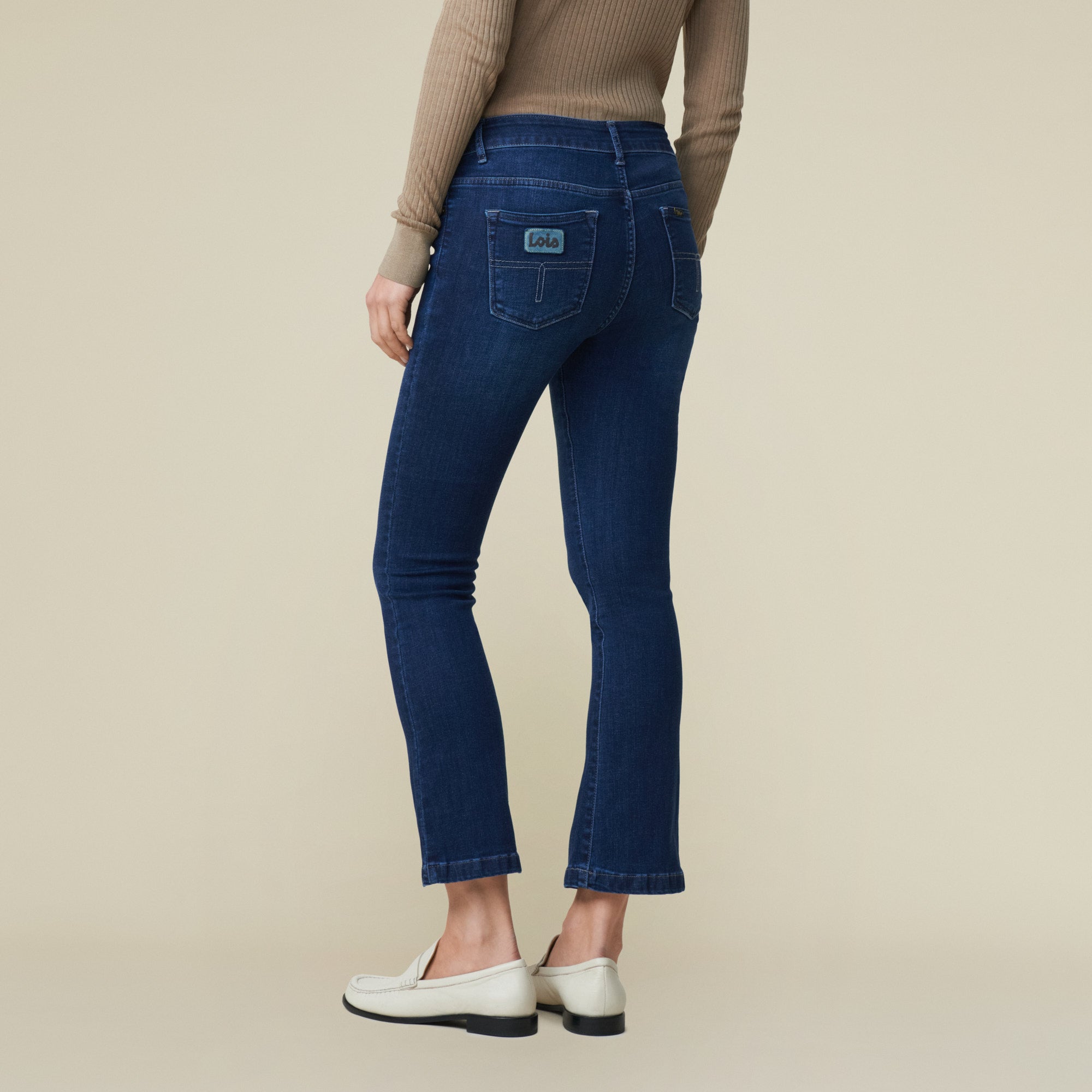 Die Marbella ist eine unserer klassischen Schlaghosen mit mittlerer Leibhöhe und verkürzter Silhouette.