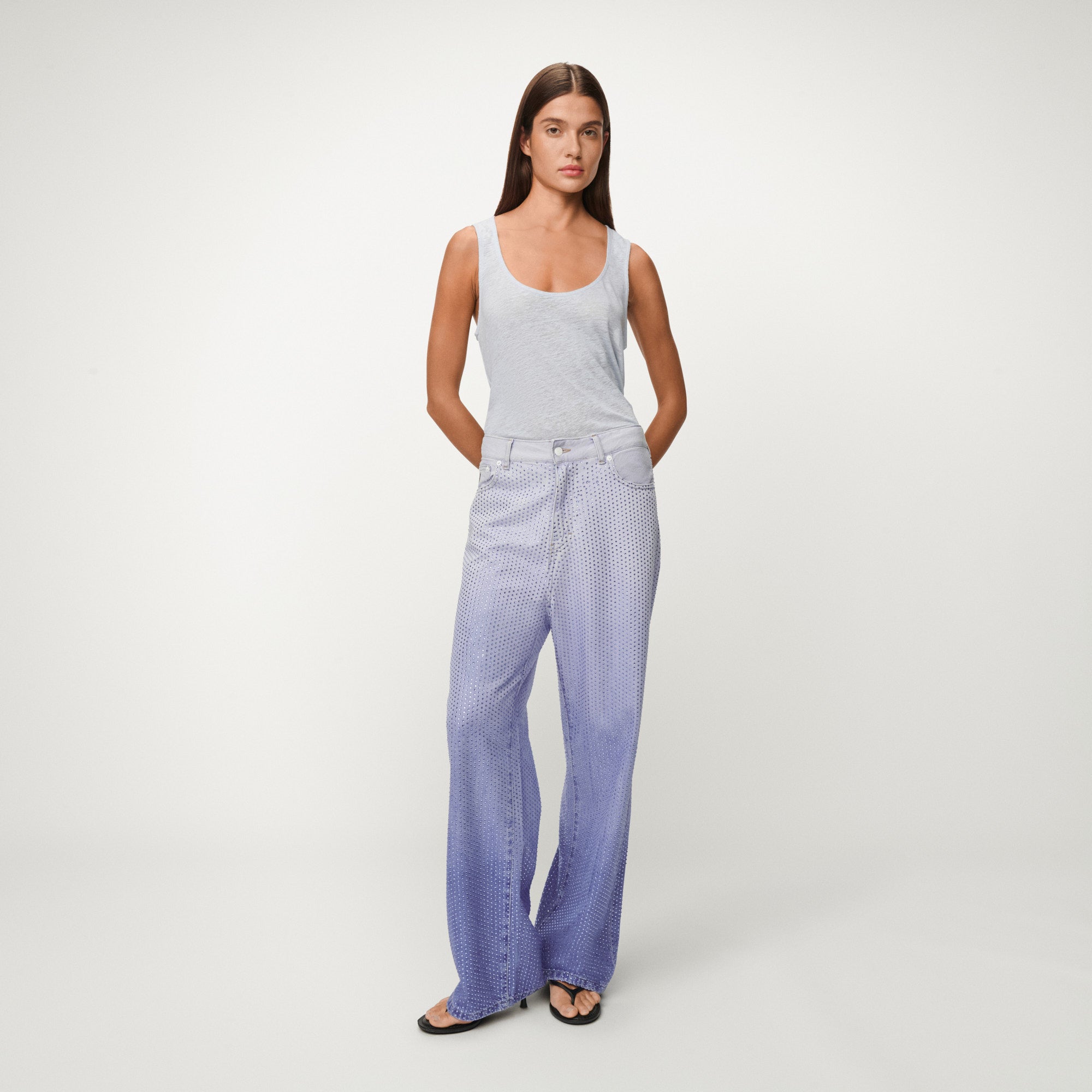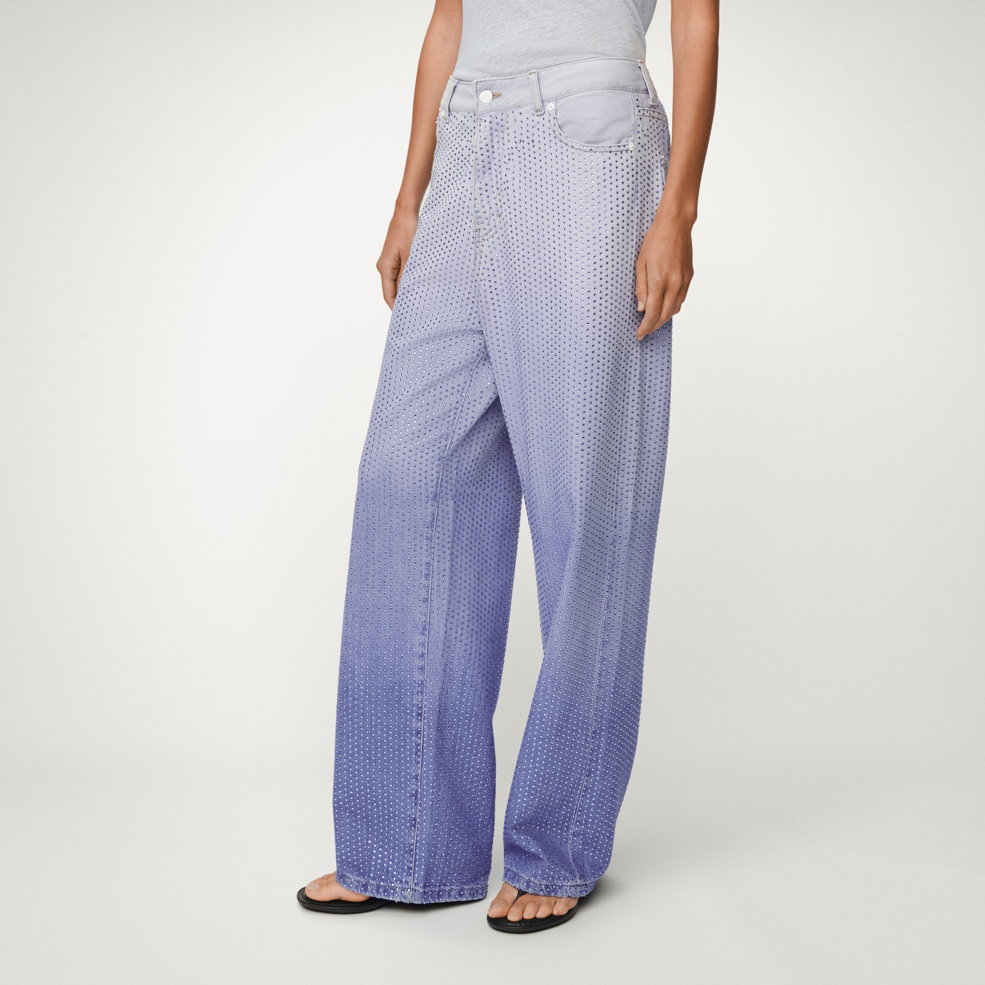 The Asha is our statement piece from our Spring/Summer collection. This mid-rise, wide-leg silhouette is fully embellished with delicate crystals that catch the light with every movement